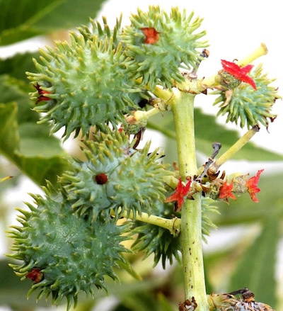 Rizinus-Öl wird aus den Samen des tropischen Wunderbaums (Ricinus communis) gewonnen. Rizinusöl wird in der Medizin als Heilmittel zur inneren und äußeren Anwendung eingesetzt, zum Beispiel als Abführmittel oder zur Hautpflege (als Antioxidant).